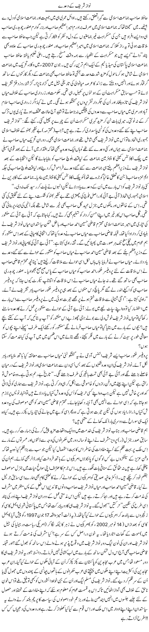 In the following op-ed, Tanvir Qaiser Shahid exposes some secrets of the relationship between Qazi Hussain Ahmed's Jamaat-e-Islami and Nawaz Sharif's PML-N.